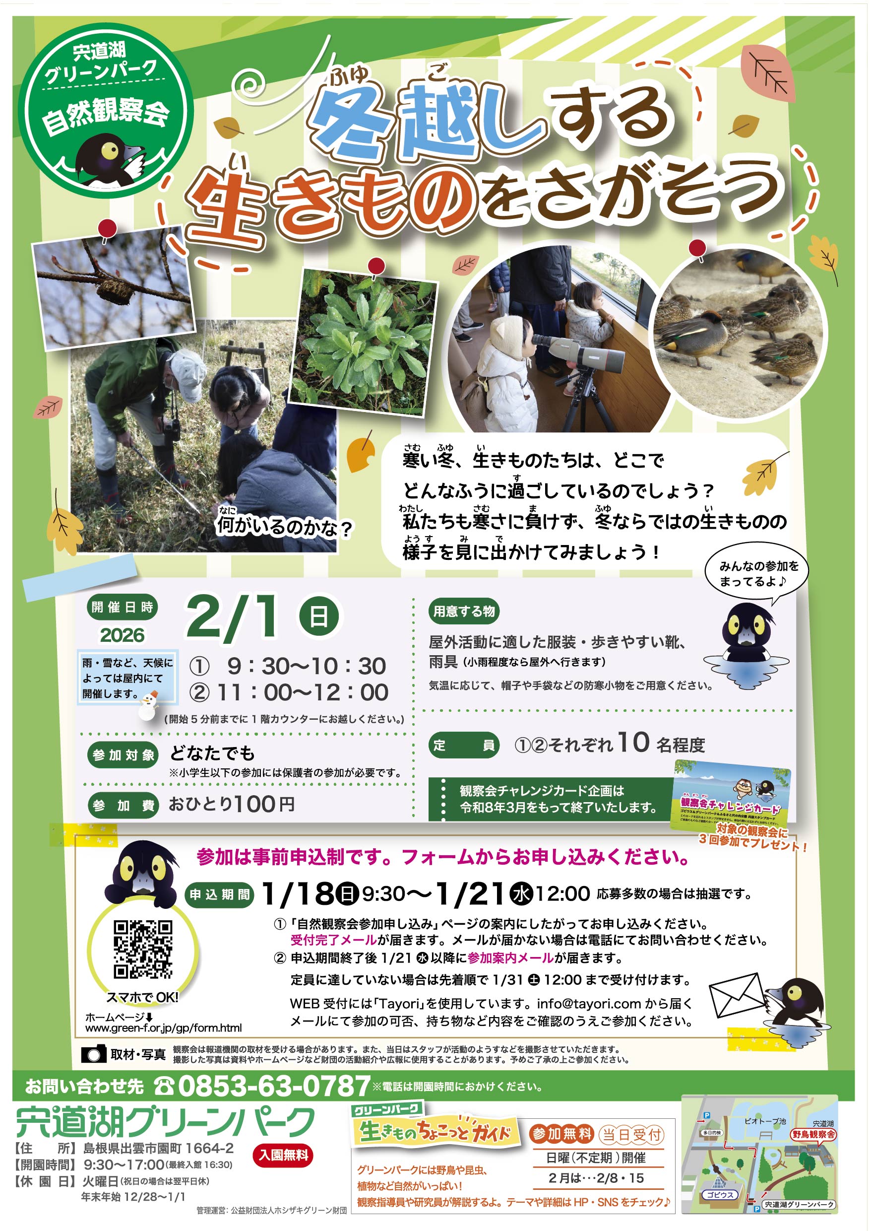 観察会は報道機関の取材を受ける場合があります。また当日はスタッフが活動のようすなどを撮影させていただきます。撮影した写真は資料やホームページなど財団の活動紹介や広報を目的として使用することがあります。予めご了承いただきますようお願いいたします。