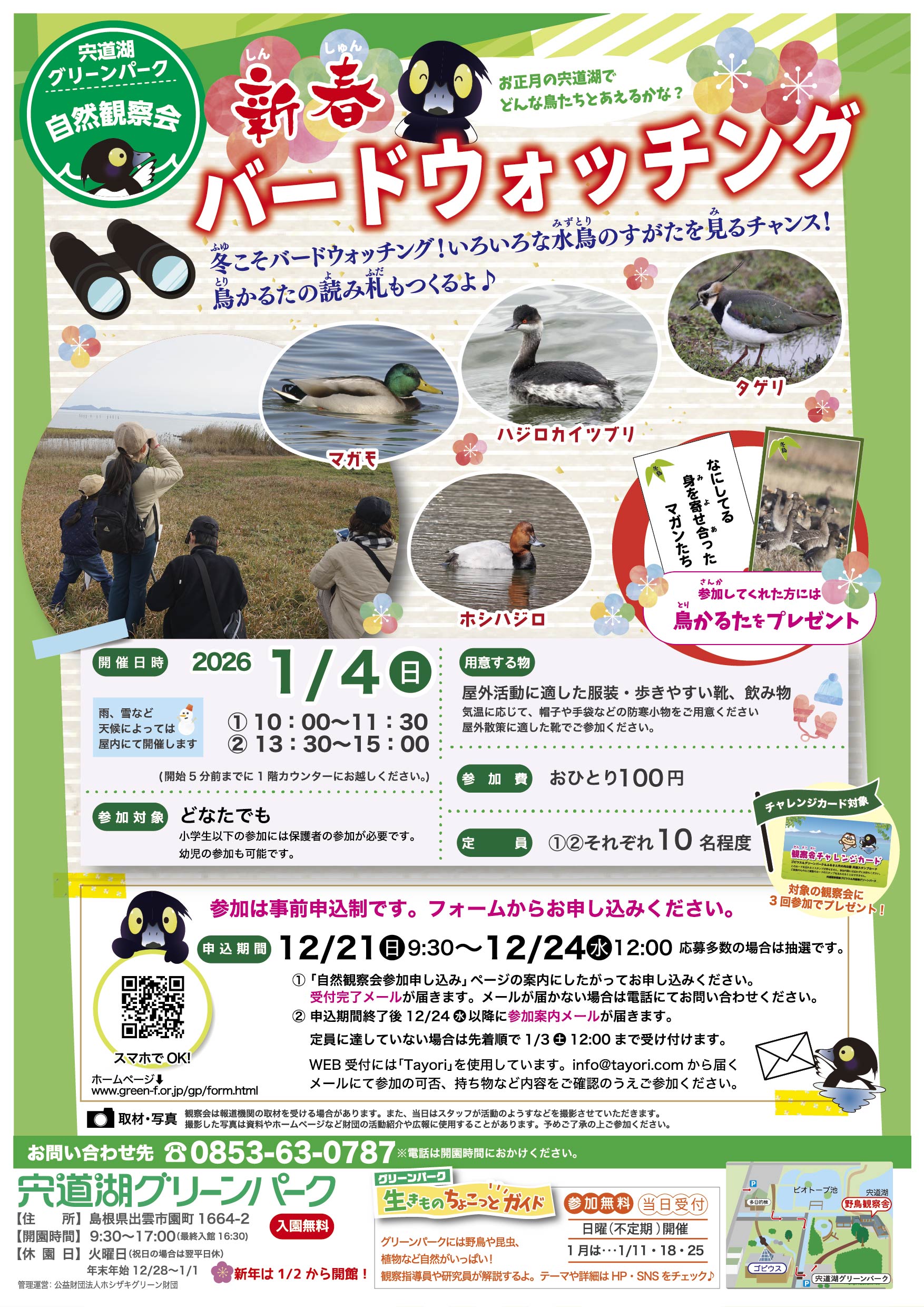 | 冬こそバードウォッチング!いろいろな水鳥のすがたを見るチャンス!鳥かるたの読み札もつくるよ♪ | ||
