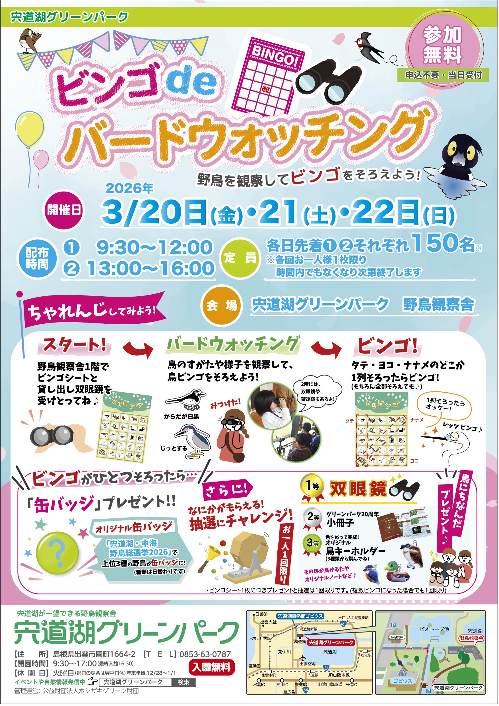 バードウォッチングをして鳥ビンゴ!プレゼントもあるよ〜