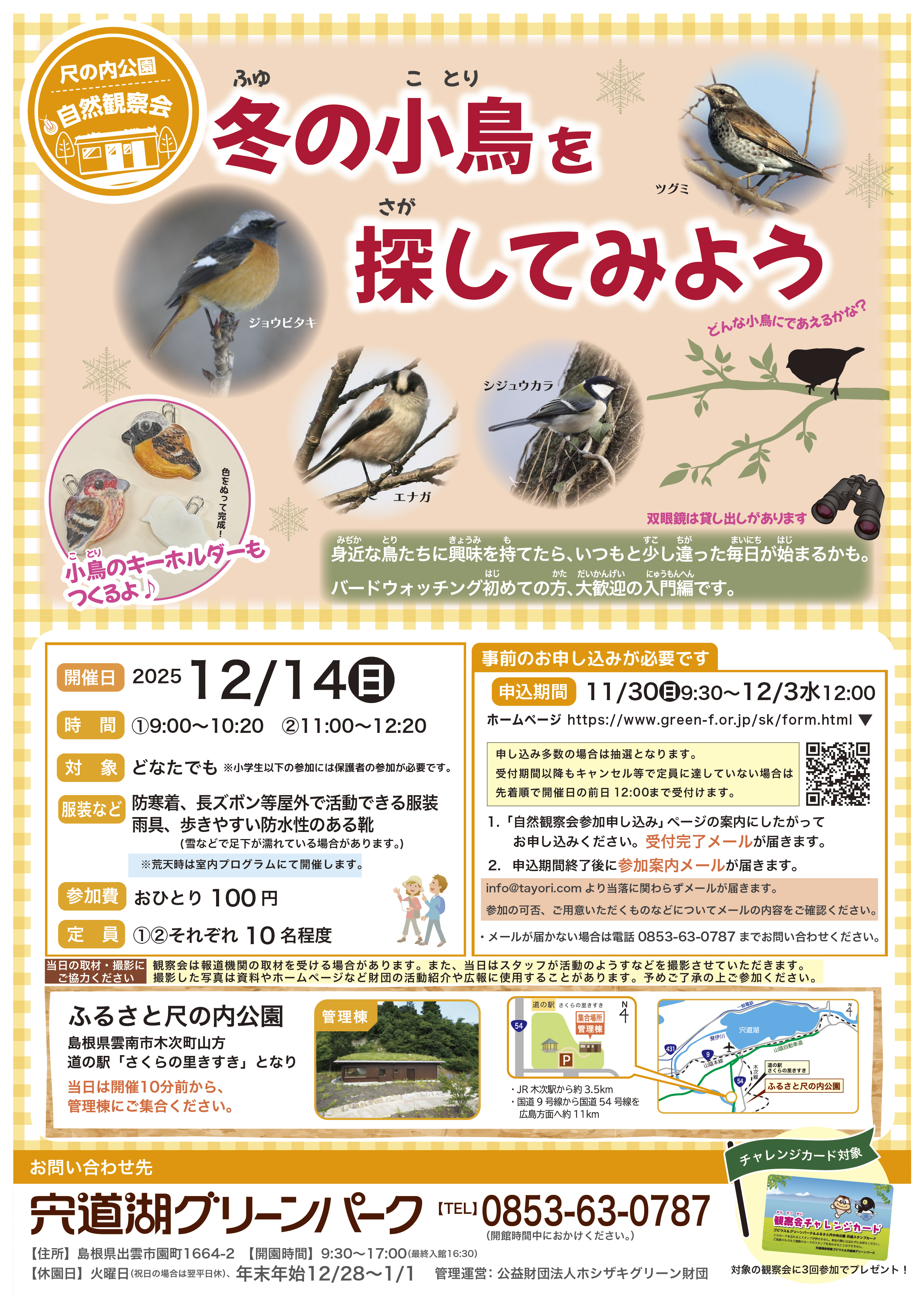 ふるさと尺の内公園 自然観察会「冬の小鳥を探してみよう」
